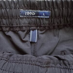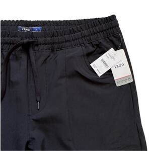 IZOD Mens Black Elastic Waist Slim Taper Fit Workout Casual Active Pants