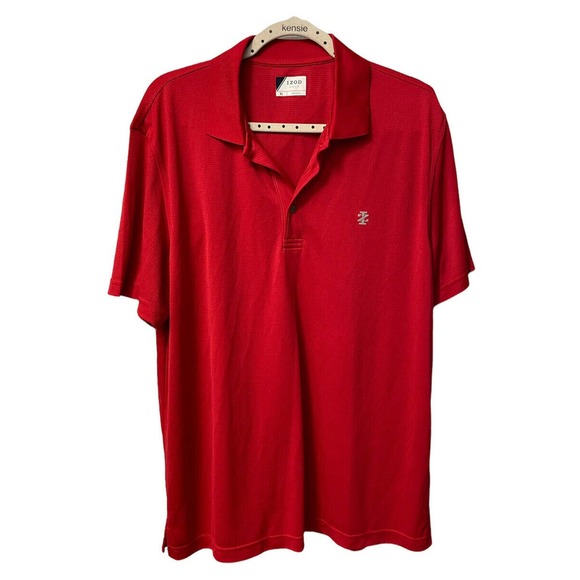 IZOD Mens Active Polo Shirt Red Size XL Grid-Print Stretch Golf.