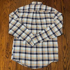 IZOD Men’s Blue Tan Brown Plaid Long Sleeve Button Down Shirt