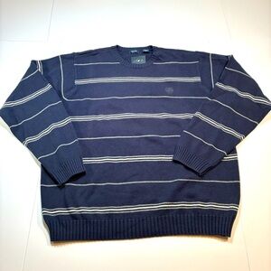IZOD Mens Cotton Sweater Crewneck Navy Blue Stripe XL NWT
