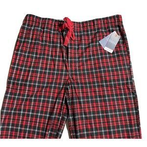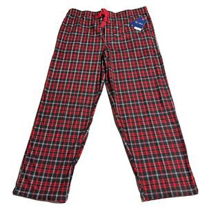 IZOD Mens Pajama Pants Bottoms Silky Fleece Plush Red Black Plaid Lounge Size XL