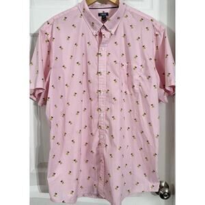IZOD Mens Pink Hula Girl Resort Button Down Collared Shirt All Over Print Sz XXL
