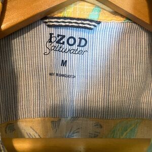 IZOD Men's Saltwater Classic-Fit Performance Beach Button-Down Shirt in a tropical print.