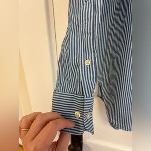 IZOD Men's Shirt M Blue STRIPED 100% Cotton Long Sleeve Button Down