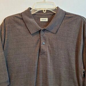IZOD Men's Shirt Polo Golf LG Tall Sporty Charcoal Stretch Check Business Casual