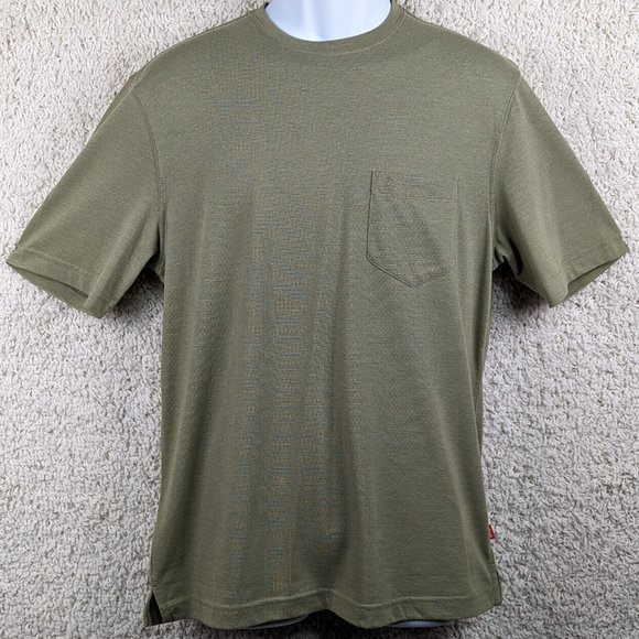 Pre-Owned Condition! 60% Cotton/40% Polyester. Olive Green Pullover Tee-Shirt with Chest Pocket.