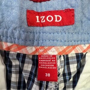 IZOD Men’s Shorts Size W38 Multi Color Plaid Pocket 10” Inseam Flat Front Cotton