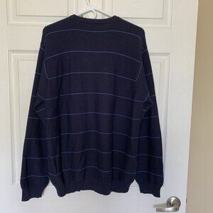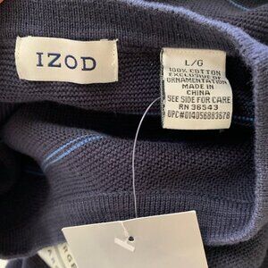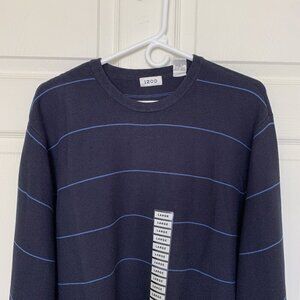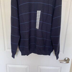 IZOD Men's Sweater Shirt Pullover Large Long Sleeve Dark Blue Striped NWT
