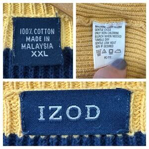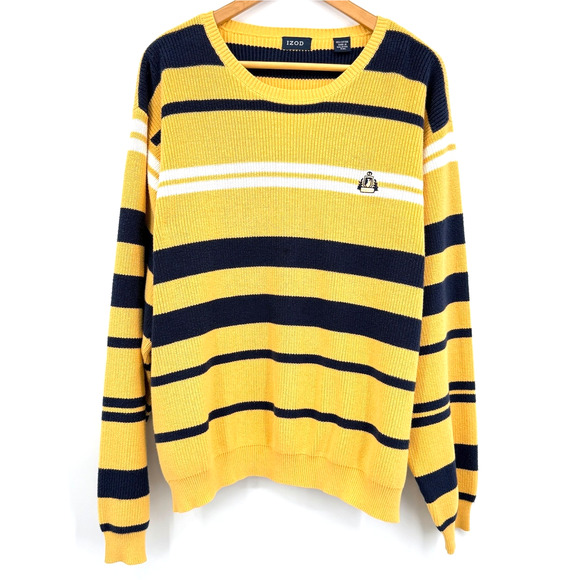 IZOD Mens Sweater Yellow XXL Academia Heritage Old Money Preppy Cotton Stripes