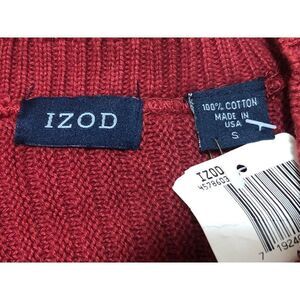 IZOD Mens Sweater Pullover Ribbed Red Cotton Size S New