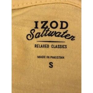 NEW IZOD Men's Size small Saltwater graphic T-shirt cotton blend yellow. Condition is New with tags. Shipped with USPS First Class. #58-7/1698-1 Item stored in pet free & smoke free environment. Reasonable offers considered. Feel free to ask questions.