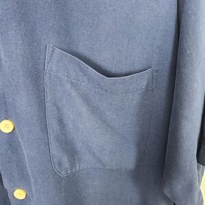 IZOD Men's Washable Silk Navy Blue Short Sleeve Pocket Shirt Size XL