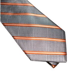 IZOD NEW $45 Black Orange Plaid Stripe Classic Silk Tie