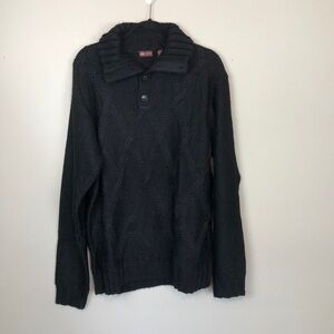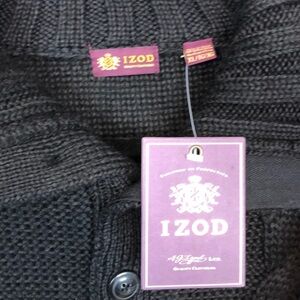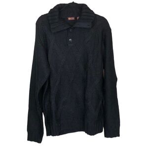 IZOD NWT Black Wool Blend Cable Knit Half Button Down Sweater size XL