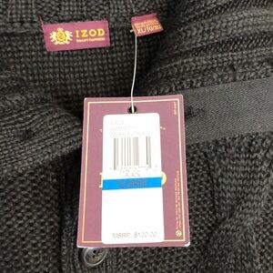 IZOD NWT Black Cable Knit Half Button Down Sweater. 50% Wool 50% Acrylic