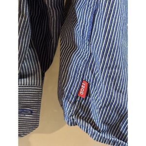 IZOD Navy Stripe Button Down Shirt Men's Large Slim Fit 100% Cotton