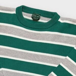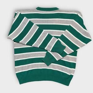 IZOD PREPPY VINTAGE STRIPE CREW NECK SWEATER GREEN WHITE GRAY LARGE