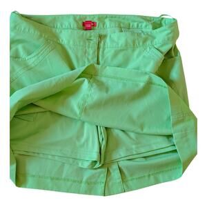 This stylish green skort in size 12 is perfect for golf, tennis, or any athleisure activity. Made with comfortable microfiber material, it features a pull-on closure, midi length, and convenient pockets.