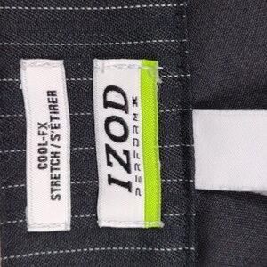 IZOD Perform Cool-FX Stretch Women's Black White Pinstripe Side Button Tab Zipper Closure Athletic Sporty Golf Skort Skirt. Shell: 97% Polyester, 3% Spandex. Lining: 100% Polyester. Two Upper Open Pockets. One Faux Back Pocket. Two Side Hem Vents. Measurements approx. Flat Lay. Waist: 16.5, Length: 17, Inseam: 3.5". Size 6. Color May Vary Due To Lighting.