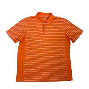 IZOD Performance Golf Shirt Orange White Strip Polo Size Men's Large