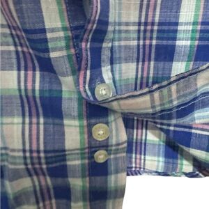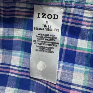 IZOD Plaid Button Down Long Sleeve Top blue/pink/green Size M 10/12
