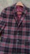 Stylish plaid blazer featuring gray and red colors. Perfect for a sophisticated look.