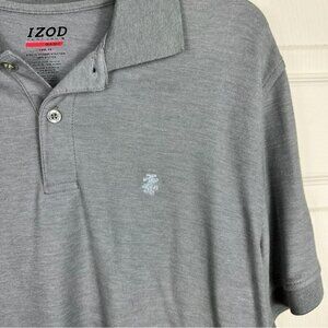 IZOD Polo Shirt Adult Large Grey White Logo Short Sleeve Cacual Mens