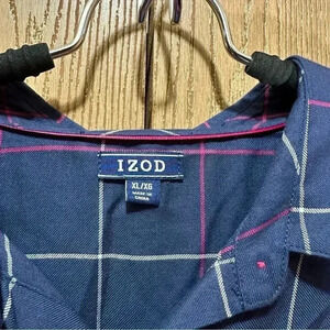 Keywords: IZOD, womens shirt, button up shirt, long sleeve shirt, plaid shirt, blue plaid, casual top, XL shirt, XG shirt, womenswear, stylish top, collared shirt