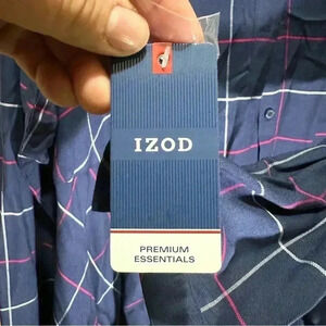 IZOD Premium Essential NWT Women's XL Checkered Navy Button Up Long Sleeve Shirt