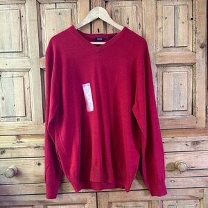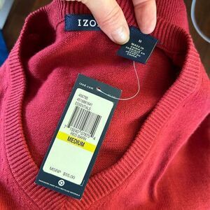 IZOD Red V-Neck Sweater Cotton Blend Mens Size Medium NWT - Small Flaw