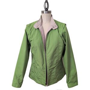 IZOD Reversible Convertible Jacket Vest Windbreaker Womens M Tan Green Excellent