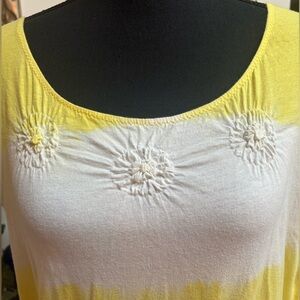 Brighten your wardrobe with this stylish yellow and white ombré top. Perfect for casual outings. 100% cotton. Such a cute top for summer ! Measures 21” ptp, 24.5” length