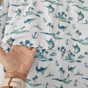 IZOD Saltwater 3XB Marlin Print Fishing Camp Button Up Shirt Palm Trees
