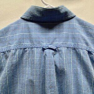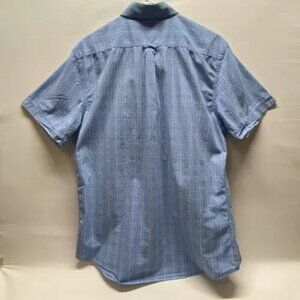 IZOD Saltwater Men's Large Button Up Short Sleeve Blue White Classic Check GUC