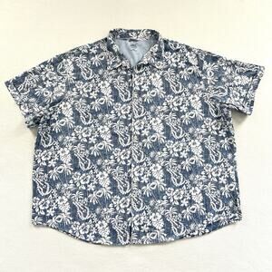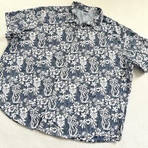 IZOD Saltwater Relaxed Classics Blue Hawaiian Short Sleeve Button Down Shirt 4XL