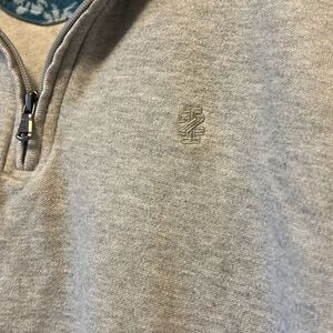 Keywords: IZOD Saltwater, quarter zip pullover, gray sweatshirt, mens pullover, relaxed fit, casual wear, long sleeve, IZOD sweatshirt, mens clothing, comfort wear, quarter zip, classic style