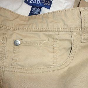 IZOD Saltwater Straight Fit Chino Pants 36W x 32L Khaki Zip/Button Closure