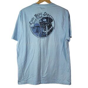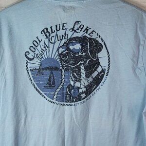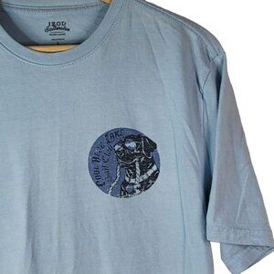 IZOD Saltwater Blue Short Sleeve T Shirt Relaxed Classics Distressed Dog Cool Blue Lake Sail Club. Good pre-owned condition with no tears, does show wash wear. Please see last picture for mark on neckline.