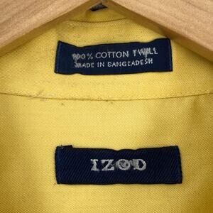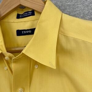 IZOD Shirt Mens 17.5 Yellow Button Up Long Sleeve Cotton Twill Casual Workwear