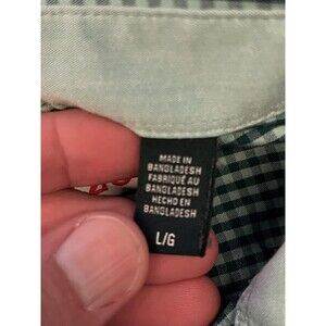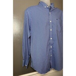 IZOD Shirt Mens Large Blue Gingham Button Down Non-Iron Stretch Long Sleeve