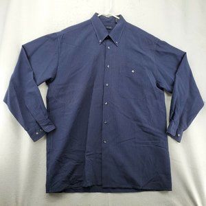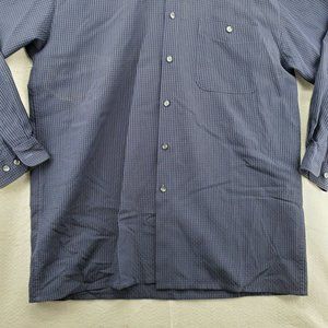 IZOD Shirt Men's Long Sleeve Casual Button Up Checkered Oxford Blue Large