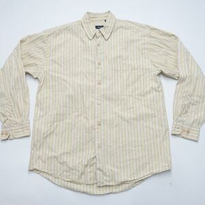 IZOD Shirt Men's Medium Yellow Striped 100% Cotton Long Sleeve Classic Button-Up