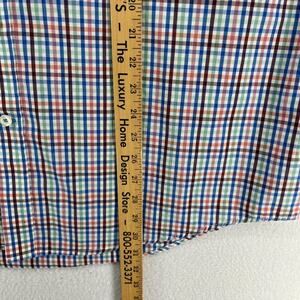 IZOD Shirt Mens XL Non Iron Stretch Poplin Plaid Button Up Cotton Blend Blue