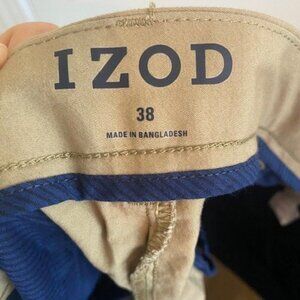 IZOD Shorts Khakis Chino Comfort Flat Front Relaxed Stretch Casual - Beige