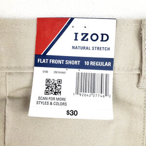 IZOD Shorts Kid's 10 Regular Khaki Flat Front Natural Stretch NEW School Pants
