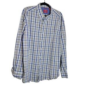 IZOD Slim Fit black blue grey Plaid striped collared button down shirt size XXL
