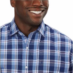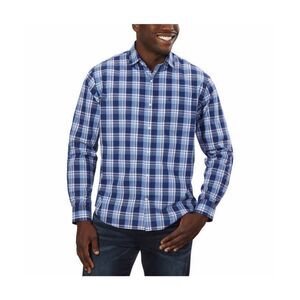 IZOD Soft Wash Button-Up Shirt Men’s Size L 16-16.5 34/35 Blue White Plaid NWT