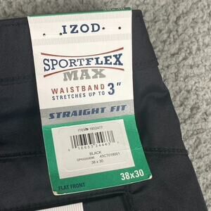 IZOD Sportflex Max Straight Fit Black Chinos NWT 38x30 Stretch Waistband