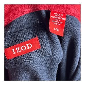 IZOD Sweater Mens L Red White Blue Pullover 1/4 Zip Preppy USA Classic Americana