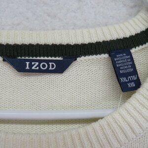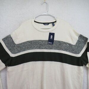 IZOD Sweater Mens Size 2XL Green Woods Cove Chest Stripe Crewneck New
